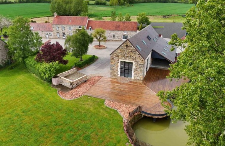 Authentique propriété en pleine campagne sur 4 hectares, spacieuse, lumineuse et confortable avec poutres et murs en pierres de granite comprenant une grange avec salle de réception. Salle de réception de 150 m² avec cuisine professionnelle et sanitaires au rez de chaussée et 4 chambres à l’étage (1 dortoir 8 lits simples dont 2 superposés, 1 chambre 1 lit double et salle d’eau privative, 1 chambre 1 lit double, 1 chambre 3 lits simples, salle d’eau). Gîte » Le pressoir » de 150 m² avec séjour 60 m² (poêle, 2 canapés convertibles, TV) et coin cuisine, buanderie, 1 chambre (1 lit double), 1 chambre (2 lits simples), salle d’eau, wc indépendants. A l’étage : 1 chambre (1 lit double), 1 chambre (1 lit double), salle d’eau, wc indépendant. Gîte « Le verger » de 140 m² avec séjour et coin salon (insert, 2 canapés convertibles, TV), cuisine, salle d’eau avec wc. A l’étage : palier (canapé convertible), salle d’eau, 1 chambre (2 lits doubles), 2 chambres en suite (2 lits doubles). Terrain 2500 m² avec pétanque, ping-pong et portique. Mare close. Grande terrasse et abri attenant à la salle. Draps, carrés de serviette et ménage inclus. Chauffage en supplément.