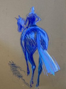 Cavalière et artiste-plasticienne, Simonne L’Hermitte croque les instantanés équestres au polo, les moments surréels des champs de courses, ou les carrés de dressage, ou tout simplement, le cheval, seul, dans la perfection de ses allures et de son modèle. De retour à l’atelier, sur la côte normande, elle restitue la majesté du cheval en montrant l’invisible : la légèreté équestre, l’impulsion, l’engagement.