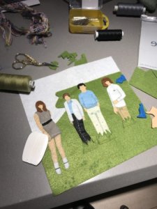A la place d’un instrument, avec une aiguille et du fil, elle réinterprète les pochettes mythiques de ses disques favoris sur feutrine. Alliant broderie et dessin, chaque œuvre est entièrement réalisée à la main et demande plusieurs jours de travail minutieux.